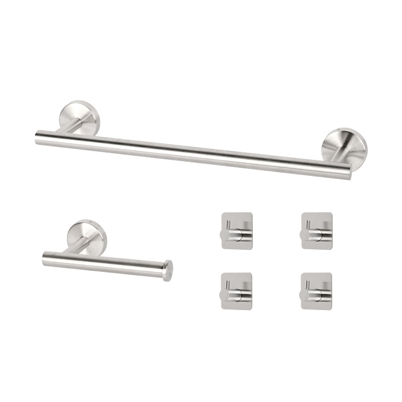 Towel Bar Paper Holder Bathroom Hardware Set, 6 Pieces, Stainless Steel, Silver