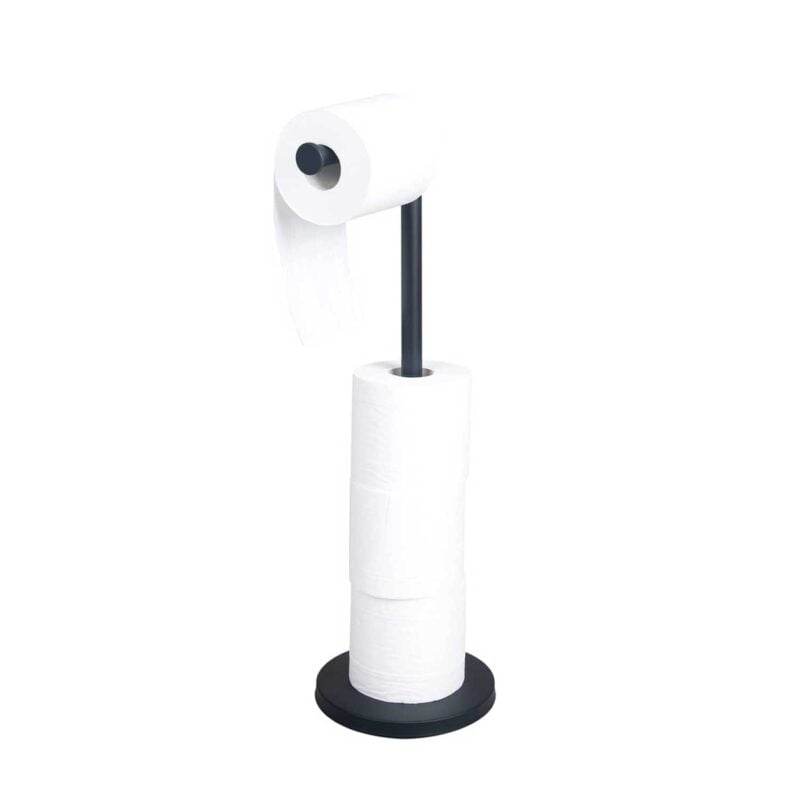 Bathroom Metal Toilet Paper Holder Stand, 4 Spare Rolls, Black, PH620
