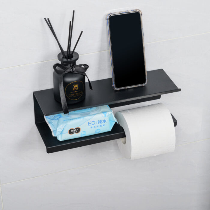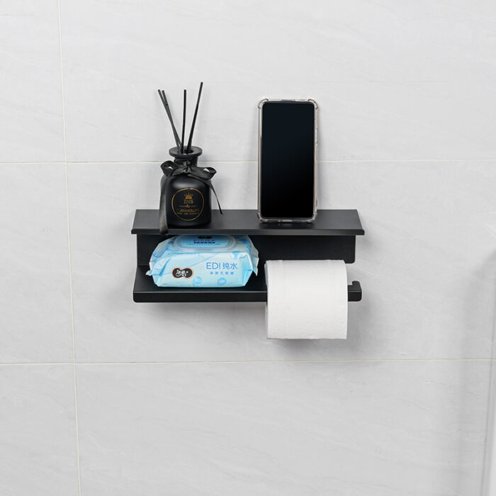 This toilet paper towel holder features a smart two-tier design that optimizes space while providing easy access to your essentials. The smaller lower shelf is perfect for storing your small object, while the larger upper platform can hold mobile phones, wet wipes, or even perfume.