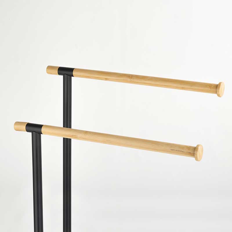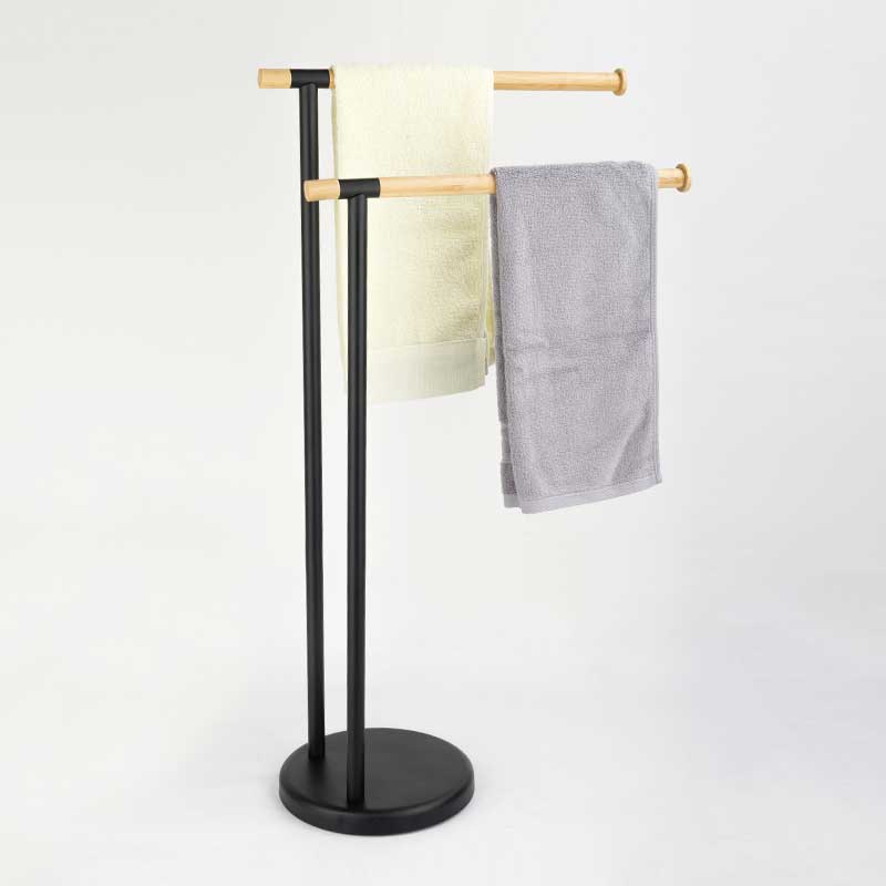 One of the standout features of our standing towel rack is its elegant design. The towel bars are made of solid wood, adding a touch of warmth and sophistication to your bathroom decor. The rack comes with two 40cm long towel bars, ideal for hanging multiple towels or even clothes. Available in classic black and white finishes, it can easily complement any bathroom theme. For those seeking something unique, we also offer customization options in different colors to match your personal style.