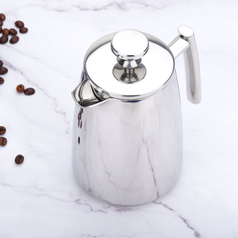 The coffee french press is made of double-layer high-quality stainless steel, which is not only sturdy and durable, anti-corrosion, put rust, but also the effect of insulation and heat preservation, so that the temperature of your coffee stays longer and retains the best flavor.