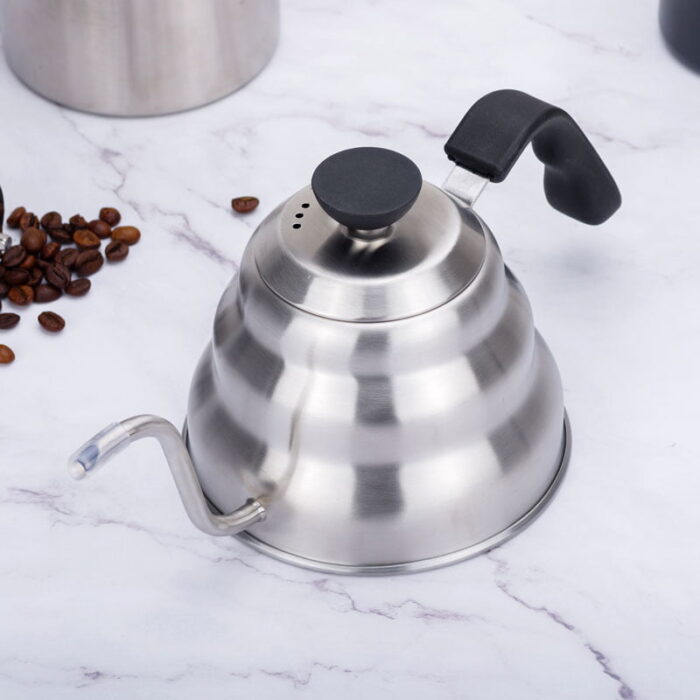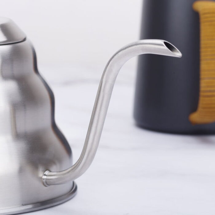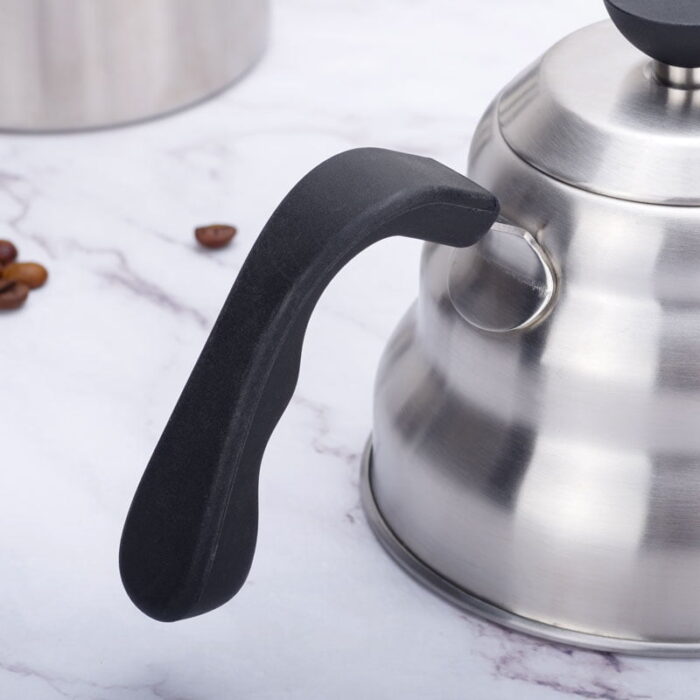 The gooseneck kettle comes with a heat-resistant handle to protect you from high temperatures. In addition, the non-slip handle ensures that the kettle will not slip when pouring water.