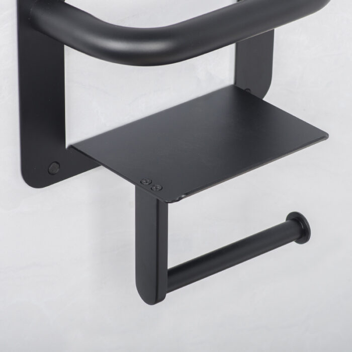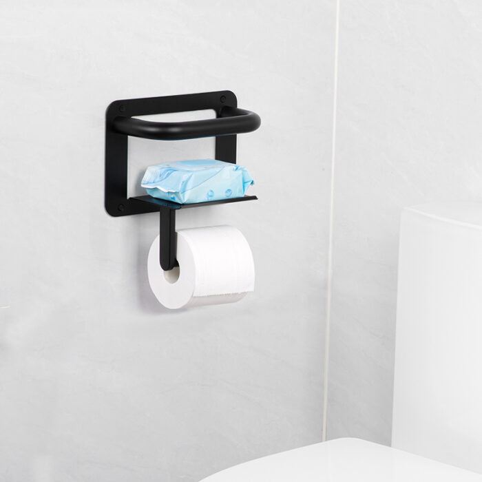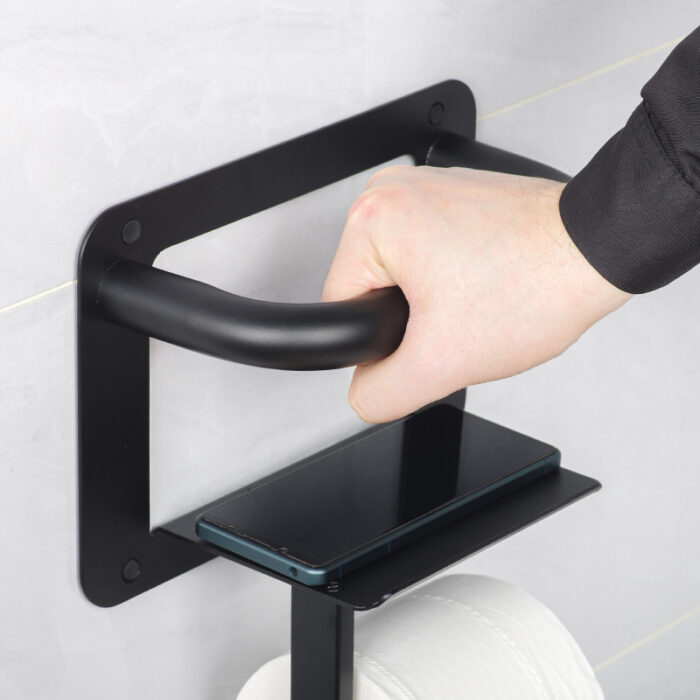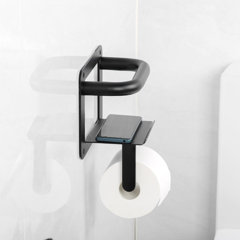We are excited to introduce our innovative product, the grab bars paper holder. This unique design cleverly combines the functionality of a traditional paper towel holder with sturdy grab bars. Installed conveniently next to the toilet, this product is not only a place to store paper towels and mobile phones but also plays an essential role in providing support for individuals when standing up.