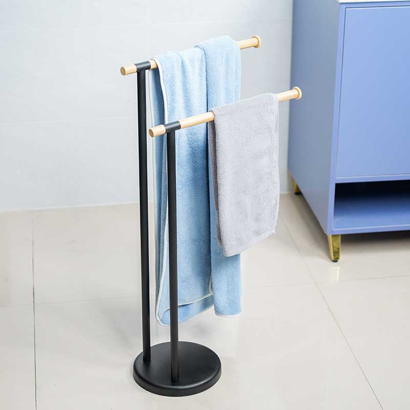 Bathroom Floor Towel Holder Standing Towel Rack, 2 Tiers, Metal and Wood, PH629