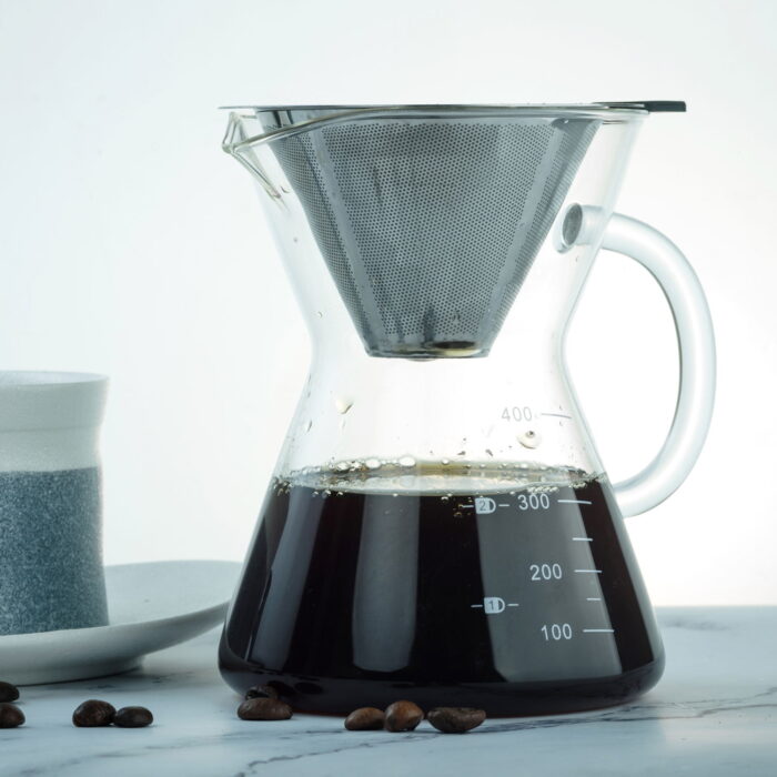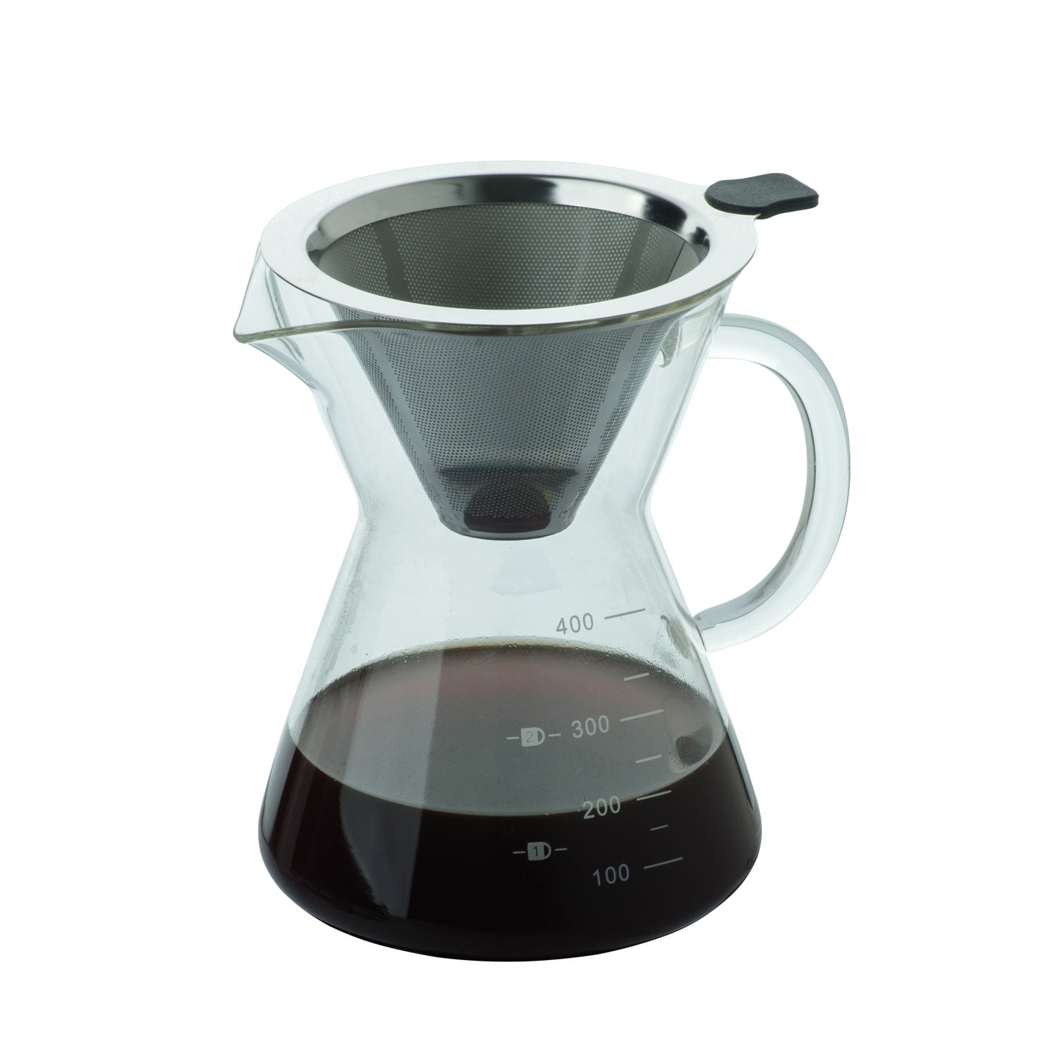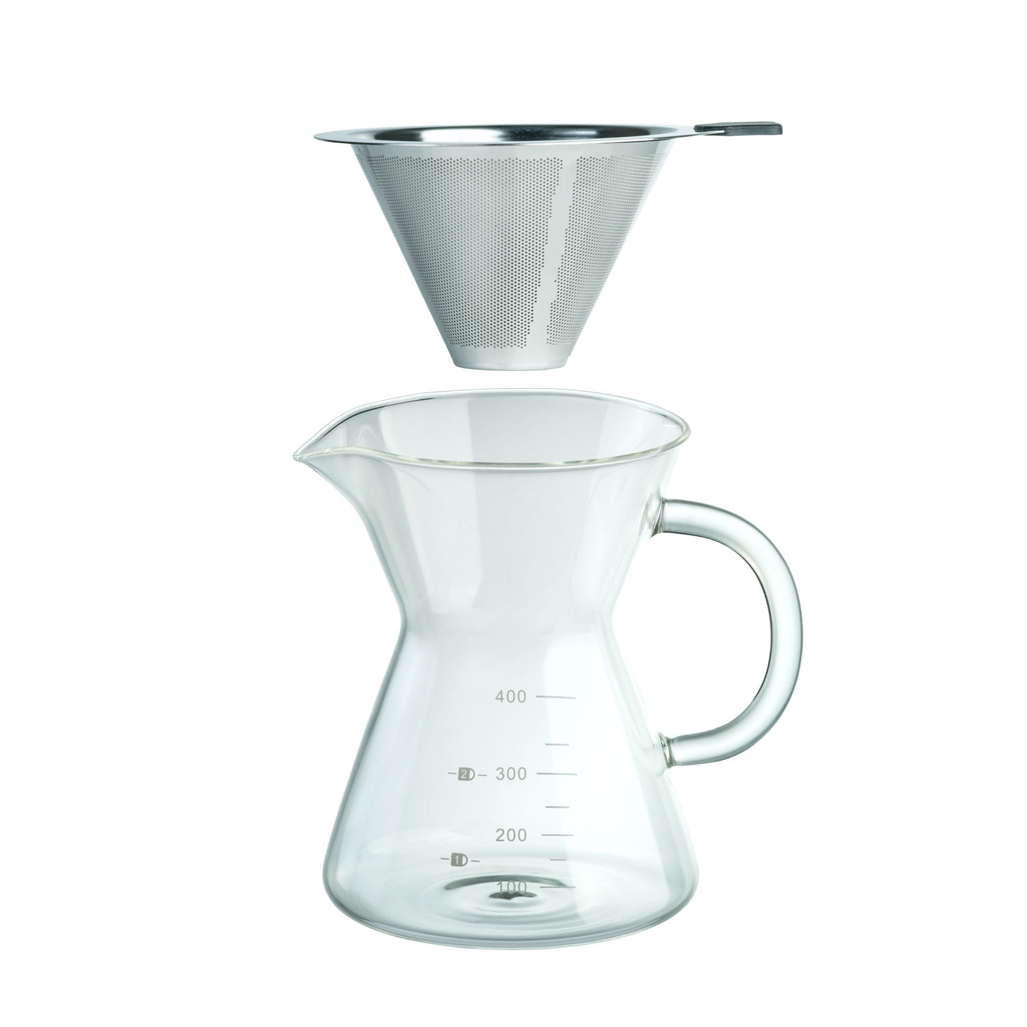 Pour Over Coffee Maker Stainless Steel Filter and Glass Coffee Dripper CF109