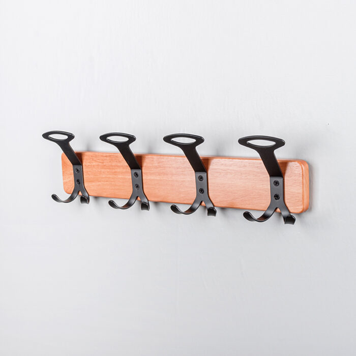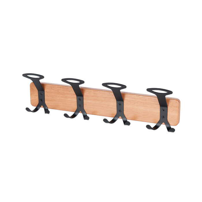 Wall Mounted Coat Hook Rail, Wooden, Metal Hooks, 4 Hooks, H537