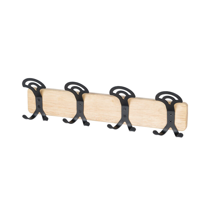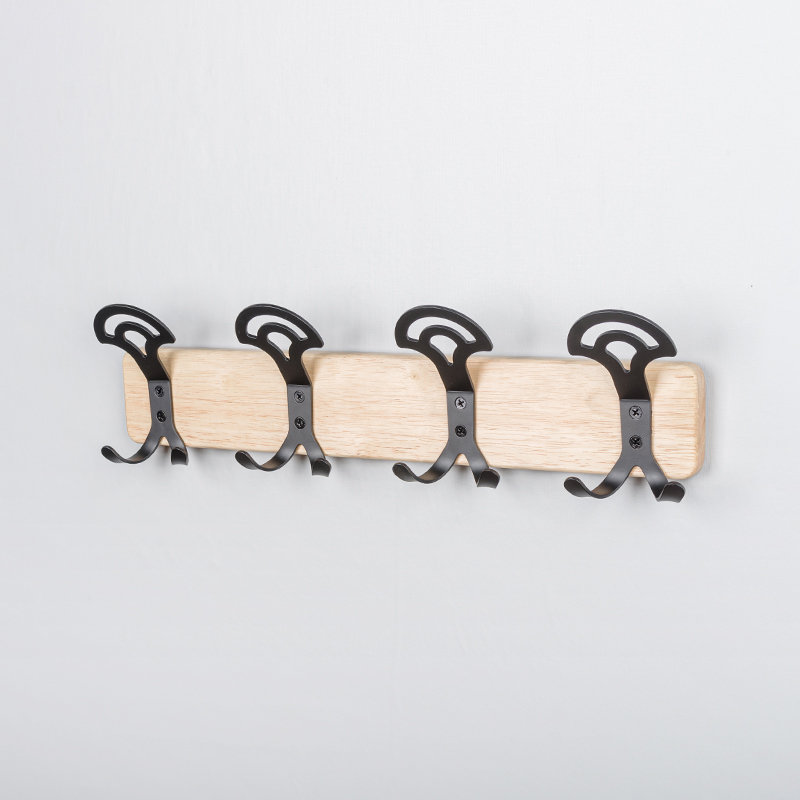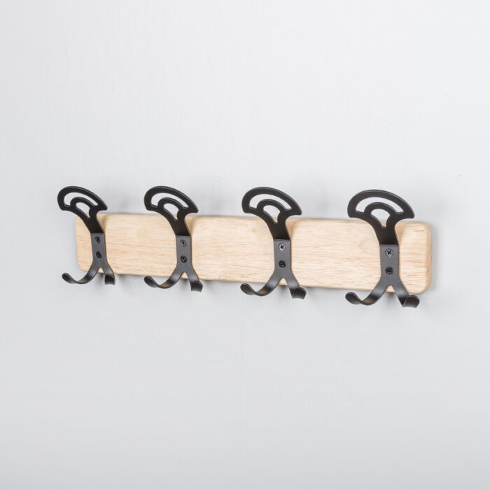 Wood and Metal Coat and Hat Hooks, 4 Hooks, Wall Mounted, H536